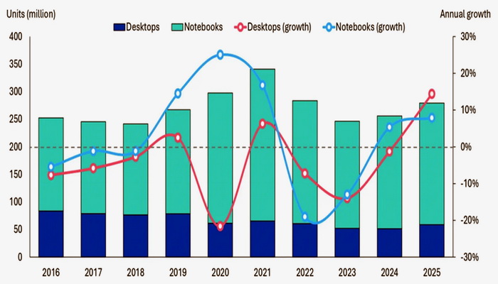 У 4-му кварталі 2025 року світові поставки ПК зросли до 75 млн штук, а за підсумками року — до 279,5 млн, що майже на 10% більше, ніж у 2024-му. Попри це, експерти Omdia обережно оцінюють перспективи ринку: через різке зростання цін на оперативну та постійну пам’ять (на 40–70%) виробники дедалі частіше перекладають ці витрати на покупців.